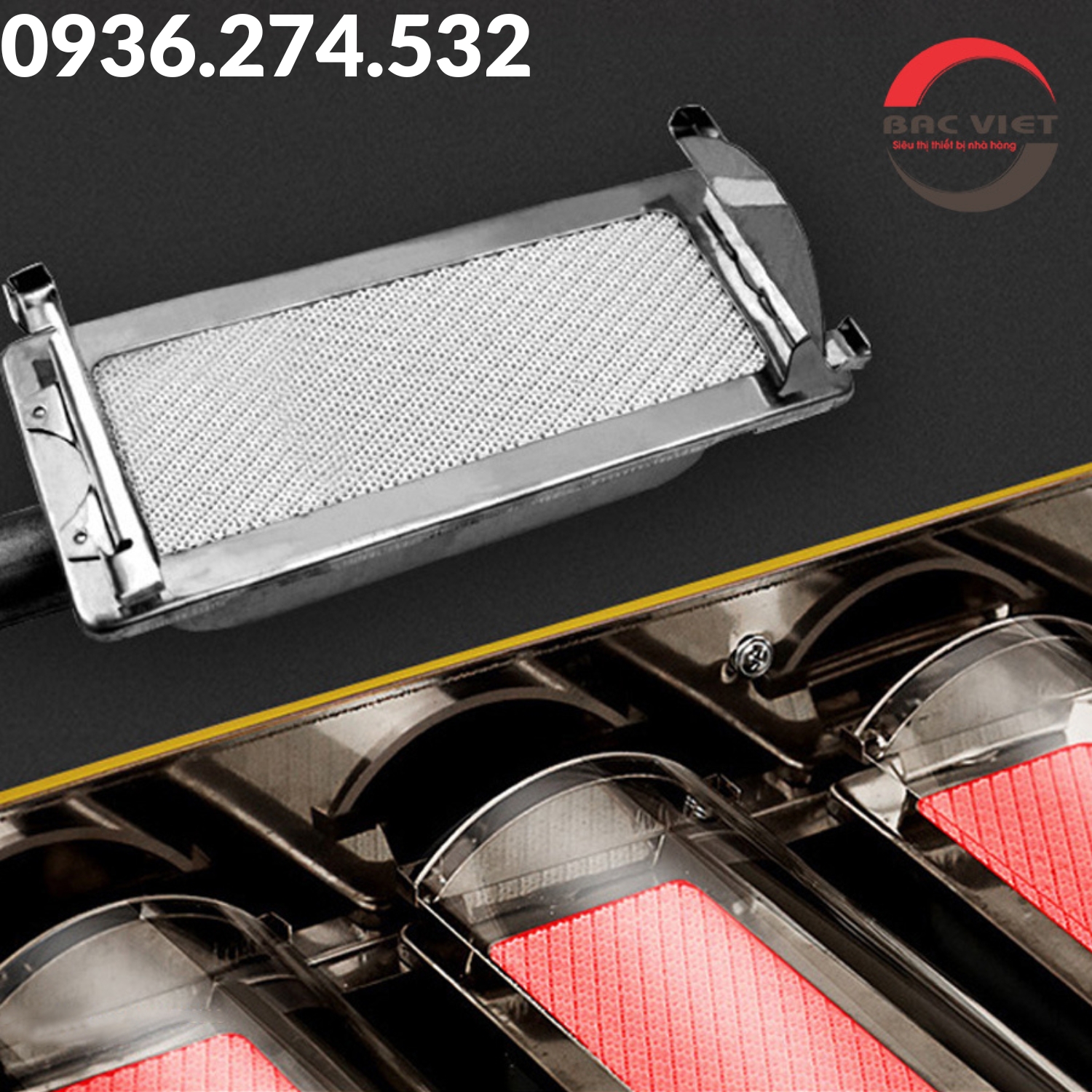 Bếp gồm 6 họng gas công nghiệp bằng đồng, chịu nhiệt tốt, cho ngọn lửa xanh mạnh và ổn định.