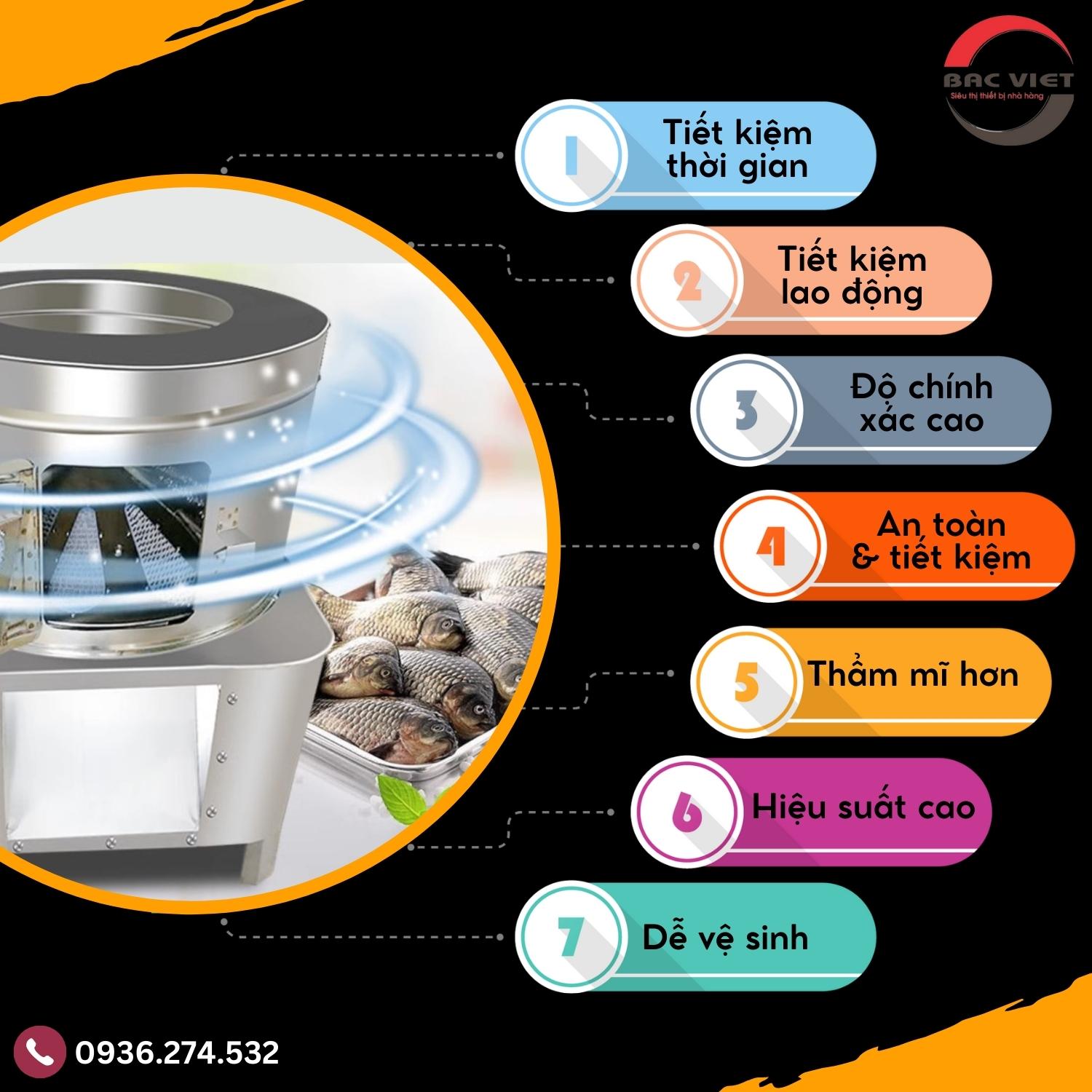 So với phương pháp thủ công, máy đánh vảy cá mang lại hàng loạt lợi ích vượt trội: