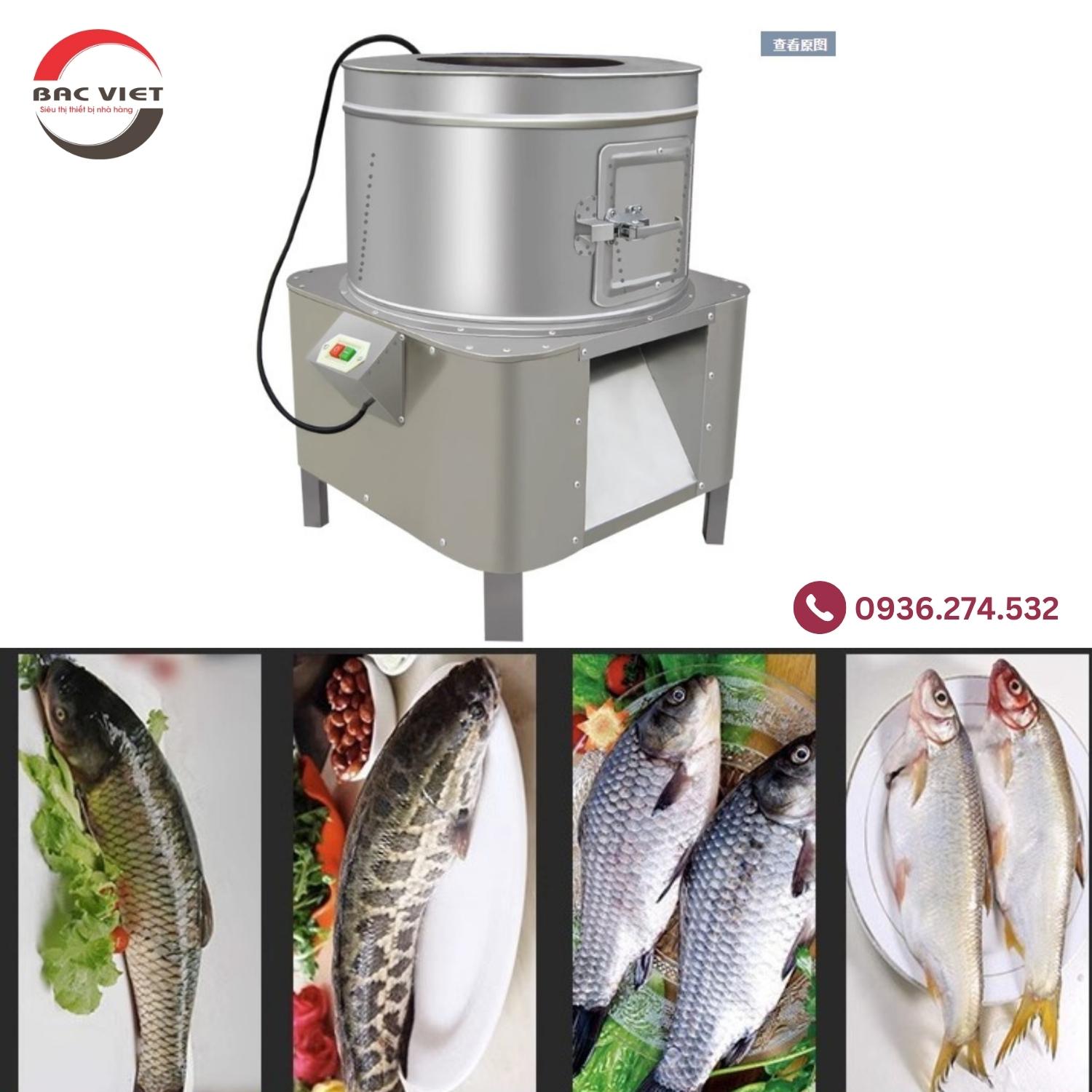 Máy đánh vảy cá là thiết bị cơ khí hoạt động bằng motor điện, dùng để loại bỏ lớp vảy cá trên bề mặt thân cá một cách nhanh chóng. Thay vì phải cầm dao cạo thủ công, người dùng chỉ cần bật máy, đưa thân cá vào vùng chổi quay hoặc trống đánh, toàn bộ lớp vảy sẽ được loại bỏ trong vài giây, giúp tiết kiệm đến 90% thời gian so với làm tay.