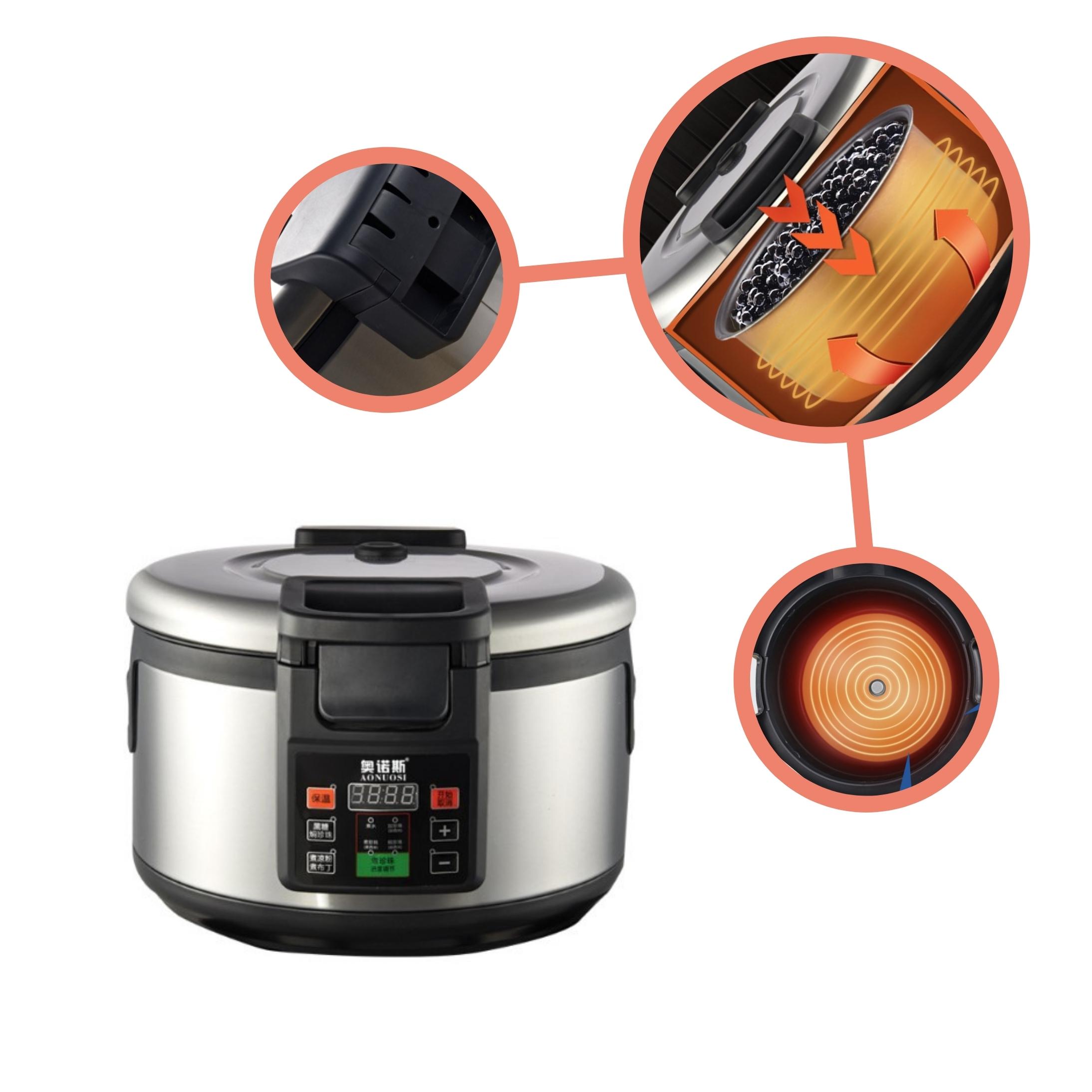 Nồi sử dụng mâm nhiệt hoặc thanh nhiệt chất lượng cao giúp nhiệt tỏa đều khắp đáy nồi, hạn chế tình trạng chân trâu cháy đáy hoặc chín không đều. Nhiệt độ được kiểm soát ổn định, giúp trân châu đạt độ mềm dẻo chuẩn.