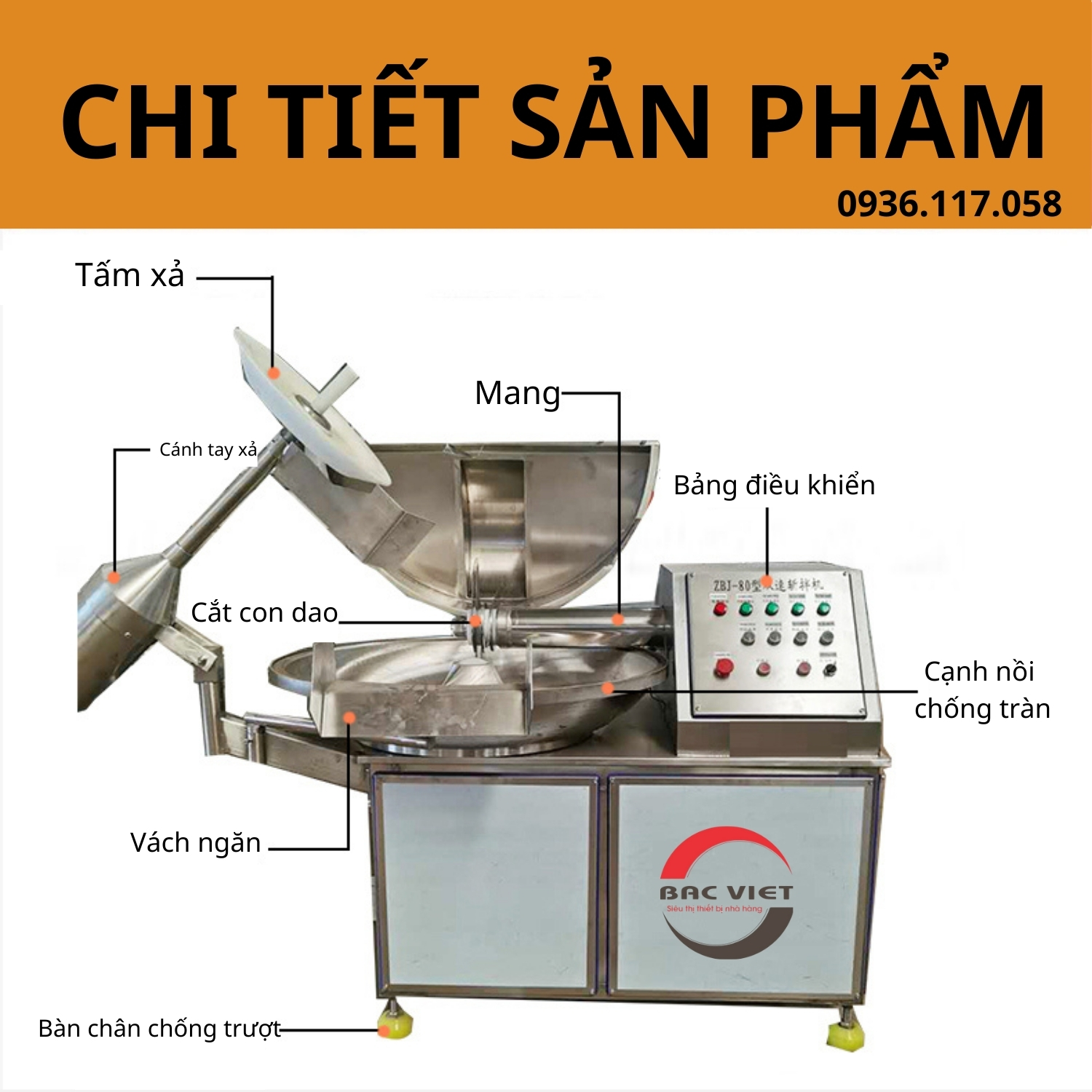 Thiết bị này giúp giảm thời gian chuẩn bị nguyên liệu, đồng thời tạo ra thành phẩm đồng đều, thuận tiện cho việc chế biến các món ăn như nhân bánh, chả, giò, salad hoặc các món xào.
