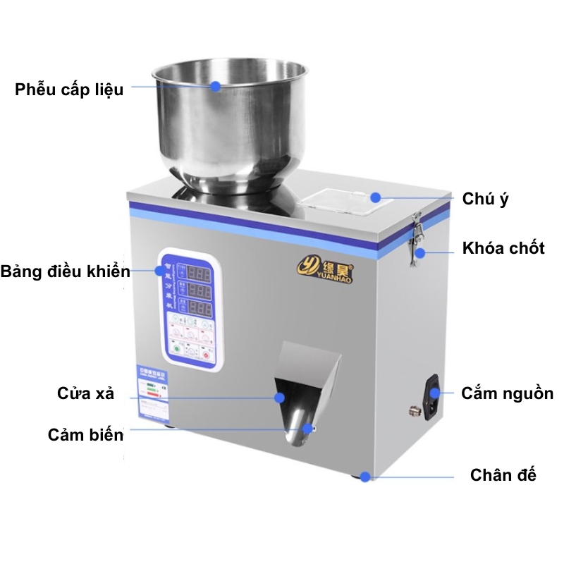Máy có tốc độ định lượng từ 15 – 30 lần/phút, tùy vào loại nguyên liệu. Đây là con số vượt trội so với việc cân thủ công vốn chỉ đạt 3–5 lần/phút.