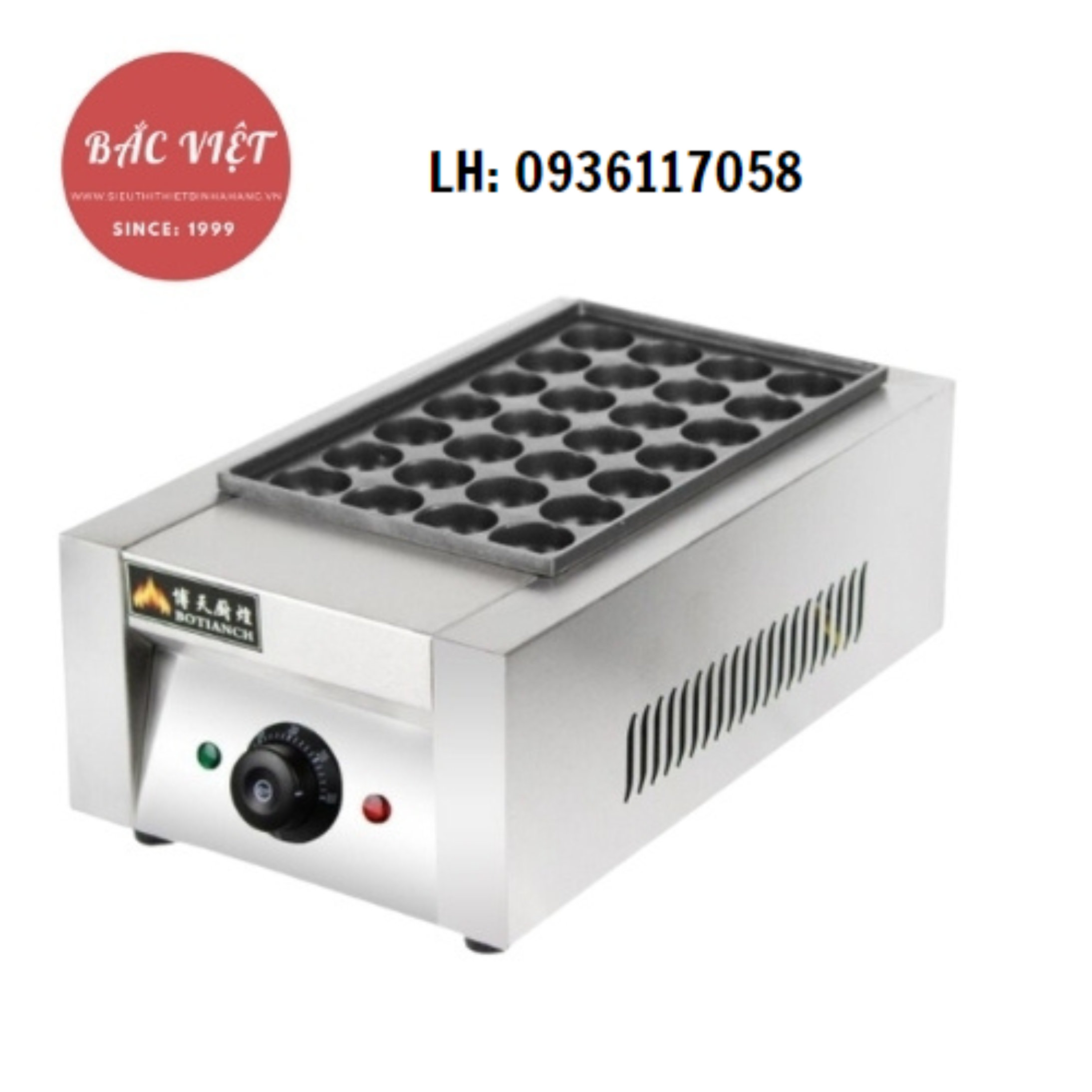 Máy làm bánh Takoyaki là thiết bị chuyên dùng để nướng bánh Takoyaki bằng điện hoặc gas. Bề mặt máy có các khuôn tròn giúp tạo hình bánh chuẩn, đồng đều về kích thước. Khi hoạt động, nhiệt được phân bổ đều giúp bánh chín từ ngoài vào trong, tạo lớp vỏ giòn và phần nhân mềm béo.