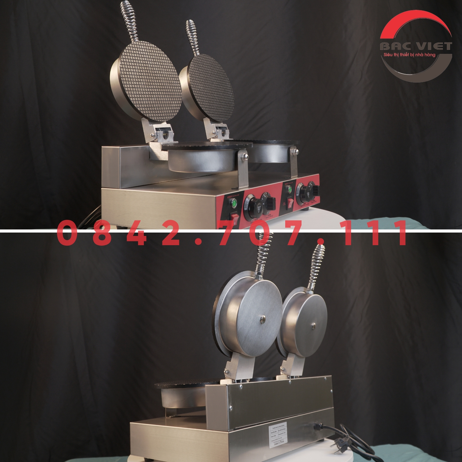 Thiết kế 2 khuôn nướng độc lập: Cho phép nướng 2 chiếc ốc quế cùng lúc, tiết kiệm thời gian và tăng năng suất.