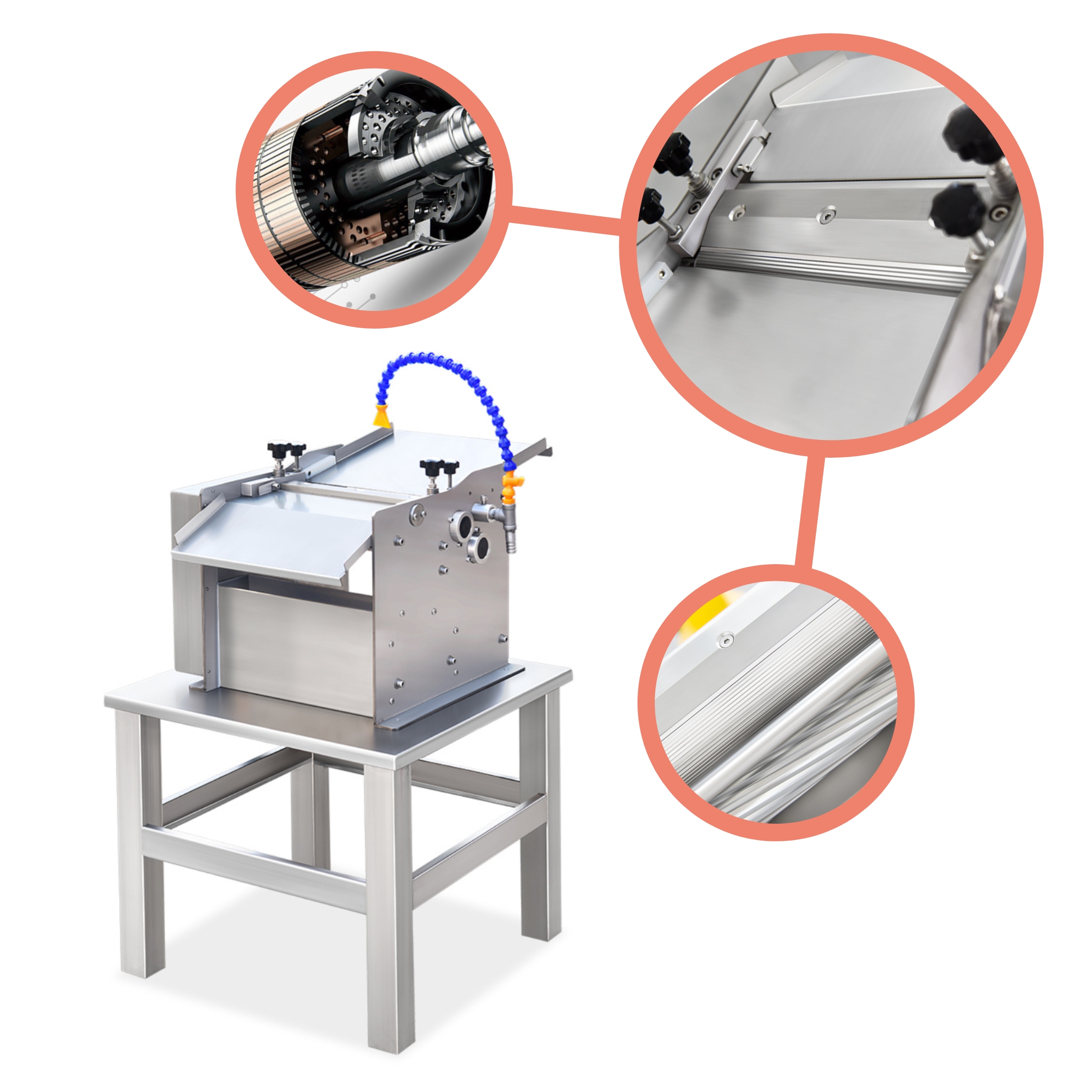 - Cấu trúc bền bỉ: Được làm từ vật liệu cao cấp inox 304 để đảm bảo hiệu suất lâu dài và an toàn vệ sinh thực phẩm.Máy luôn giữ được độ sang bóng cho dù có sử dụng 5-10 năm đi chăng nữa.