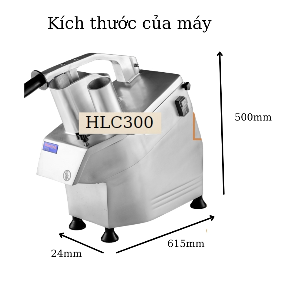 Máy thái rau củ HLC300 là dòng máy cắt thái rau củ công nghiệp được thiết kế chuyên dụng cho các cơ sở chế biến thực phẩm, bếp ăn tập thể, nhà hàng, khách sạn, quán ăn hoặc xưởng sản xuất nông sản sấy khô. Máy có khả năng thái lát, thái sợi, cắt hạt lựu, băm nhỏ nhiều loại rau củ quả khác nhau như cà rốt, khoai tây, khoai môn, hành tây, dưa leo, củ cải, bắp cải… giúp rút ngắn thời gian sơ chế lên đến 10 lần so với thao tác thủ công.