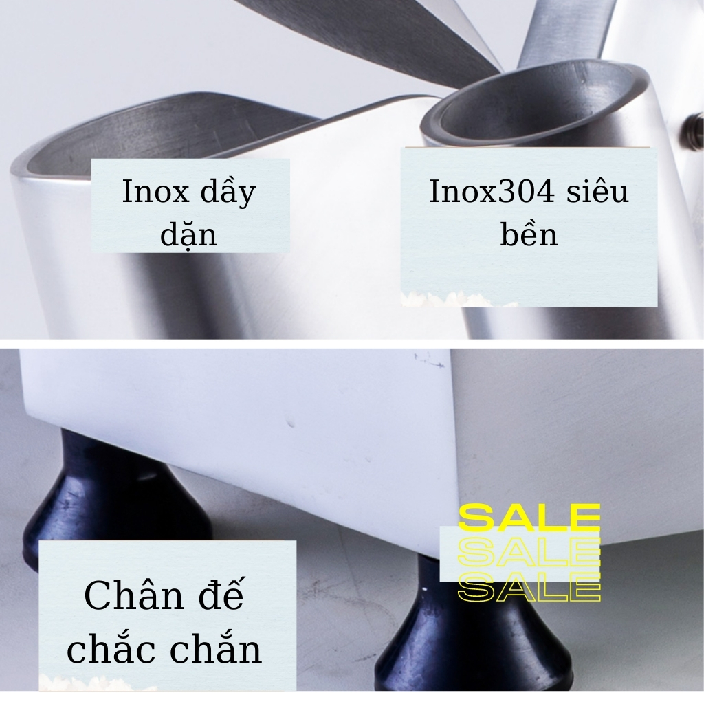 Tất cả bộ phận tiếp xúc với thực phẩm đều bằng inox cao cấp, đảm bảo tiêu chuẩn vệ sinh an toàn thực phẩm.