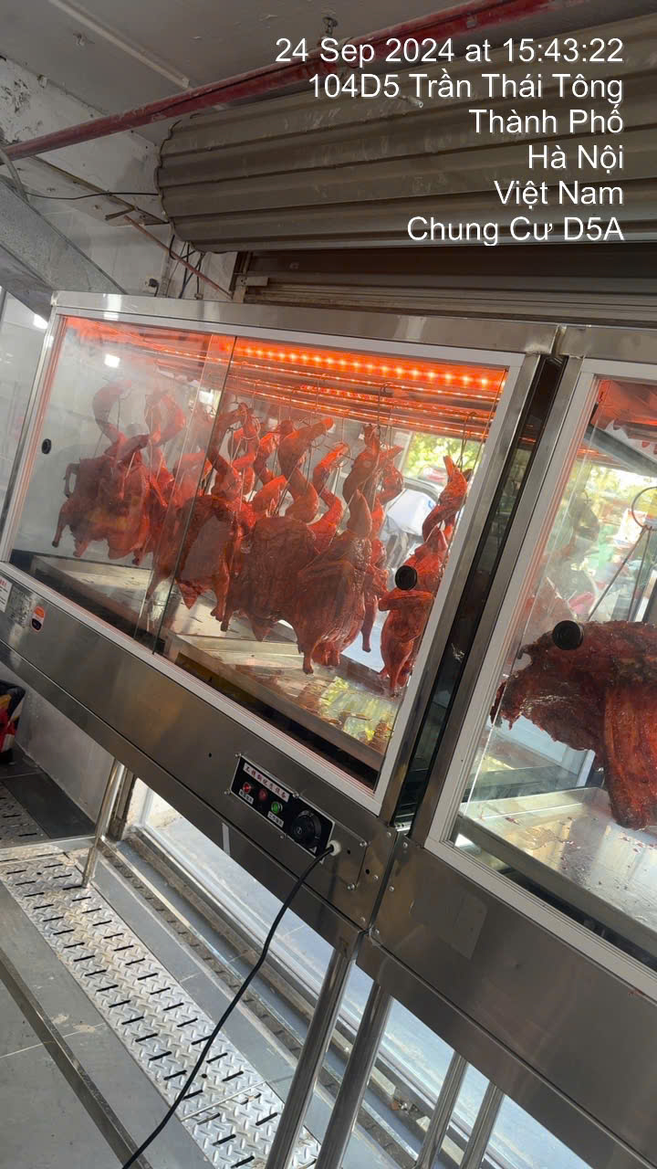 Khi tủ đạt nhiệt độ mong muốn, đặt gà vịt quay hoặc các món ăn đã chín vào bên trong.
