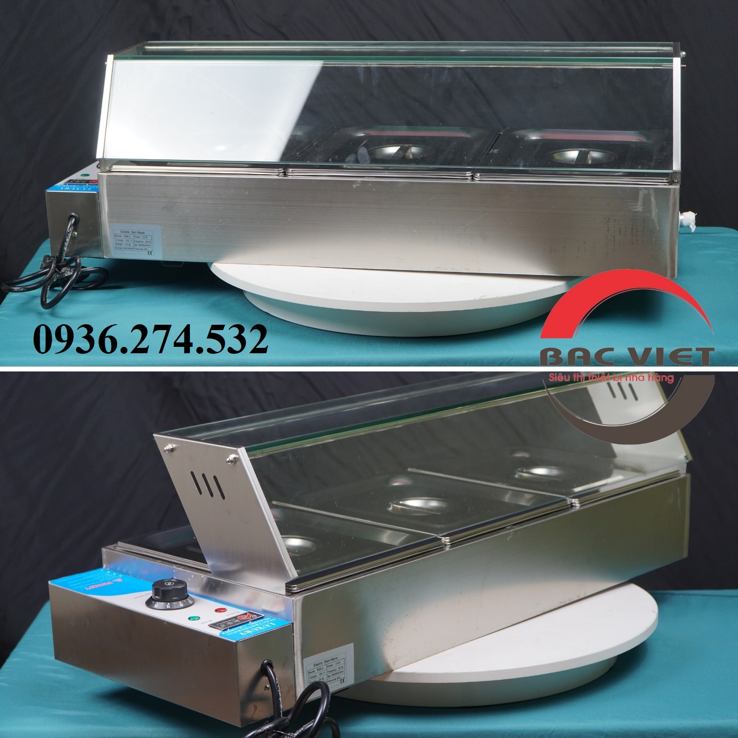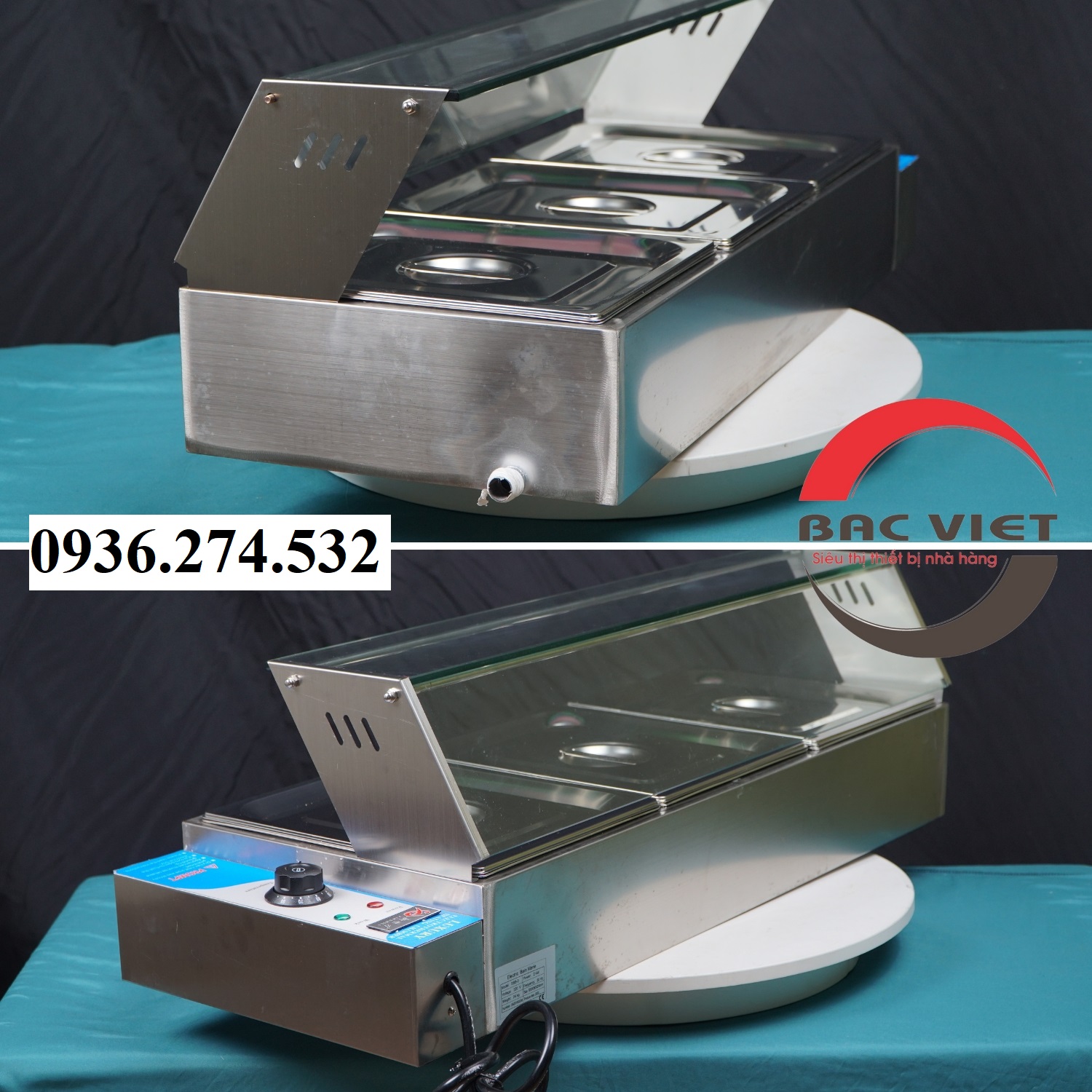 Tủ giữ nóng bằng nước: Dùng hơi nước để truyền nhiệt, giữ ẩm tốt, tránh khô món ăn.