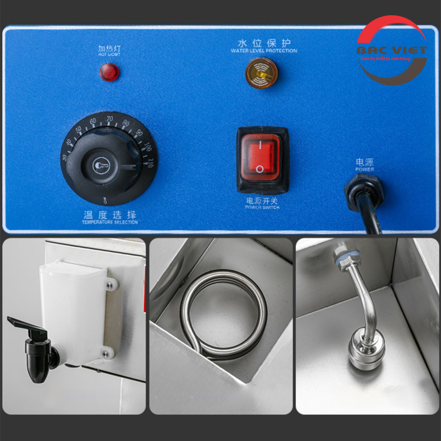 Thân tủ làm từ inox cao cấp chống gỉ sét, dễ vệ sinh và đảm bảo an toàn thực phẩm.