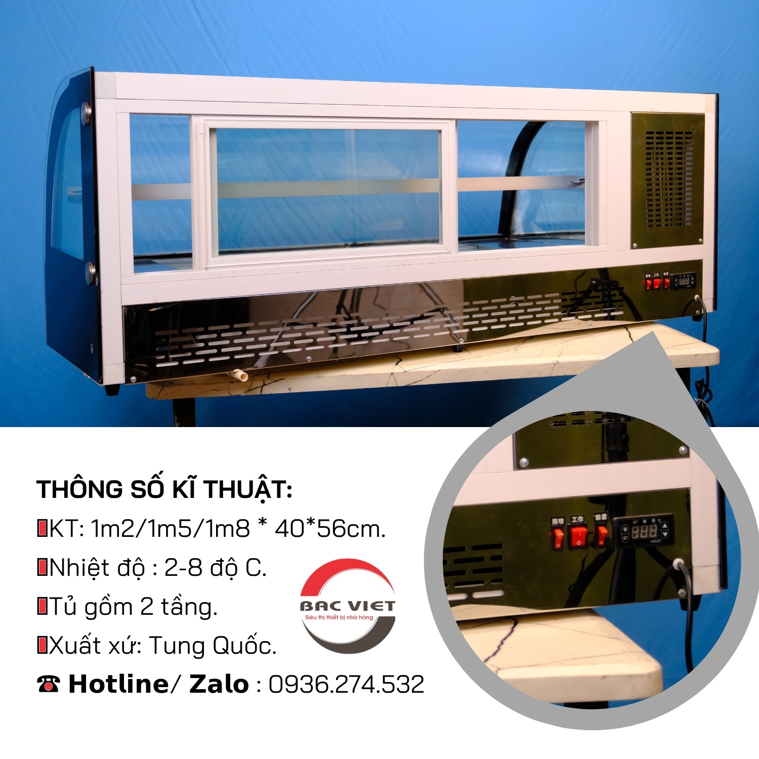 Tủ trưng bày sushi thích hợp cho nhà hàng Nhật Bản, quán sushi, sashimi, quầy buffet hải sản, khách sạn hoặc siêu thị. Nhiều mẫu mã đa dạng như tủ sushi 1 tầng, 2 tầng, kích thước từ 1m2 đến 2m phù hợp cho từng không gian và nhu cầu sử dụng khác nhau.