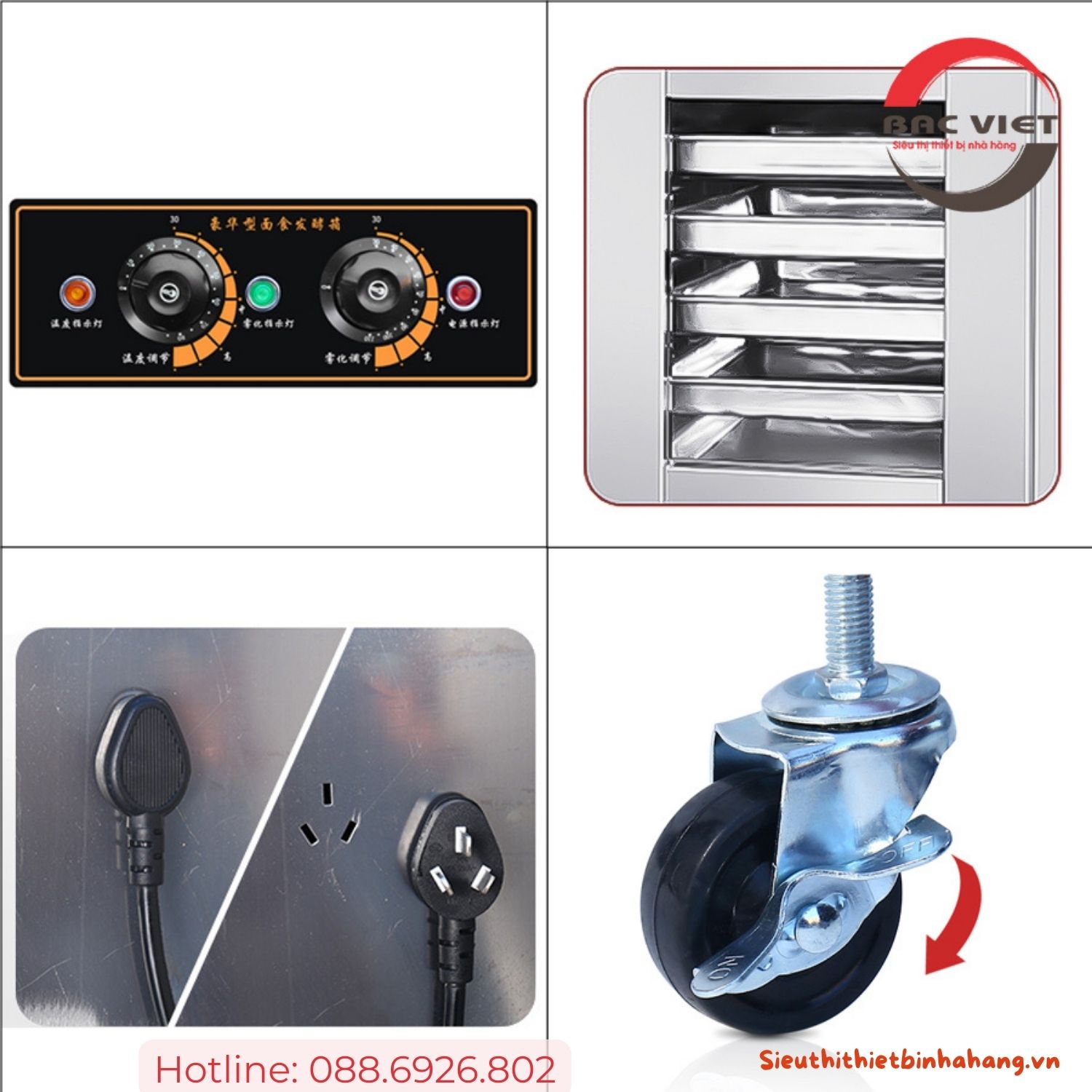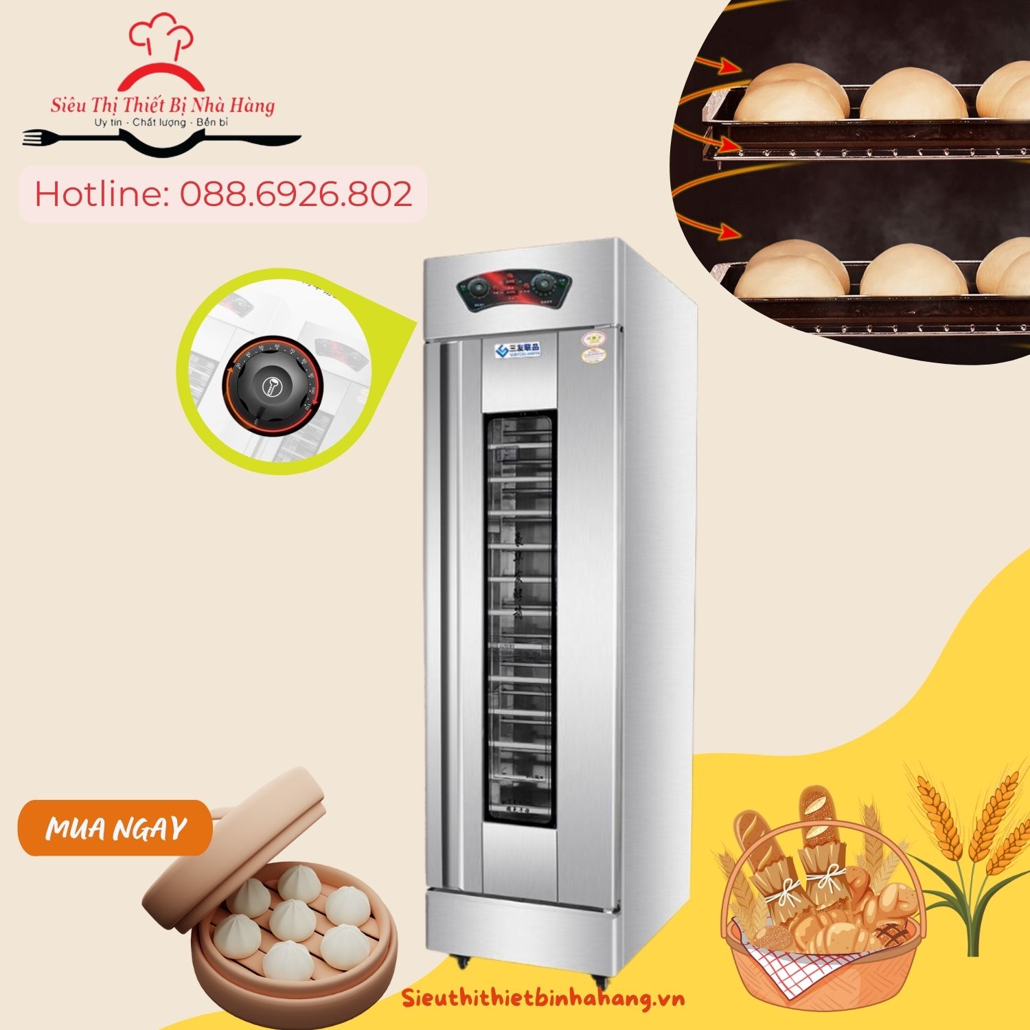 Tủ tạo môi trường ấm (khoảng 30–40°C) và độ ẩm cao, giúp men phát triển mạnh, làm bột nở đều và mịn.