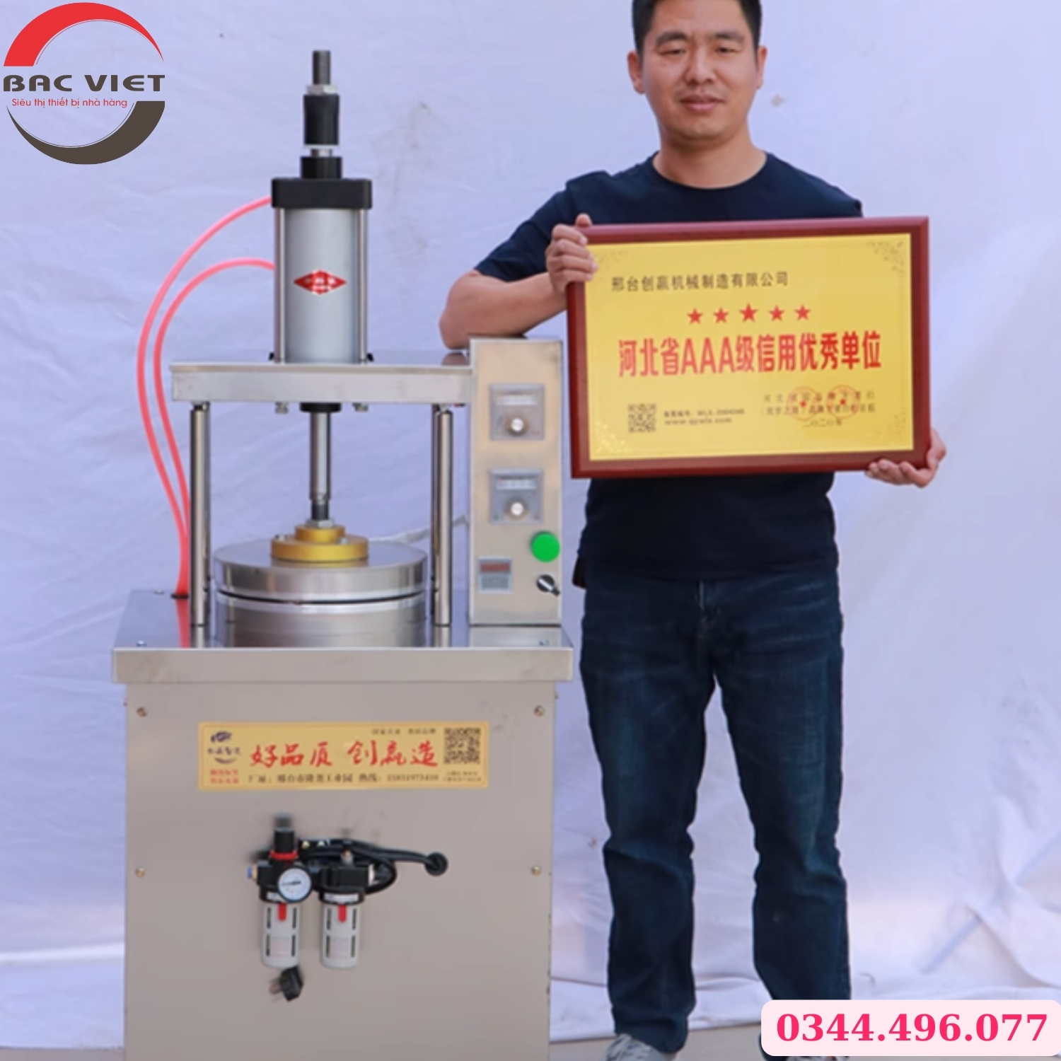 Thiết bị này giúp tạo hình vỏ bánh nhanh, đồng đều và tiết kiệm thời gian, thay thế cho phương pháp làm thủ công tốn công sức.